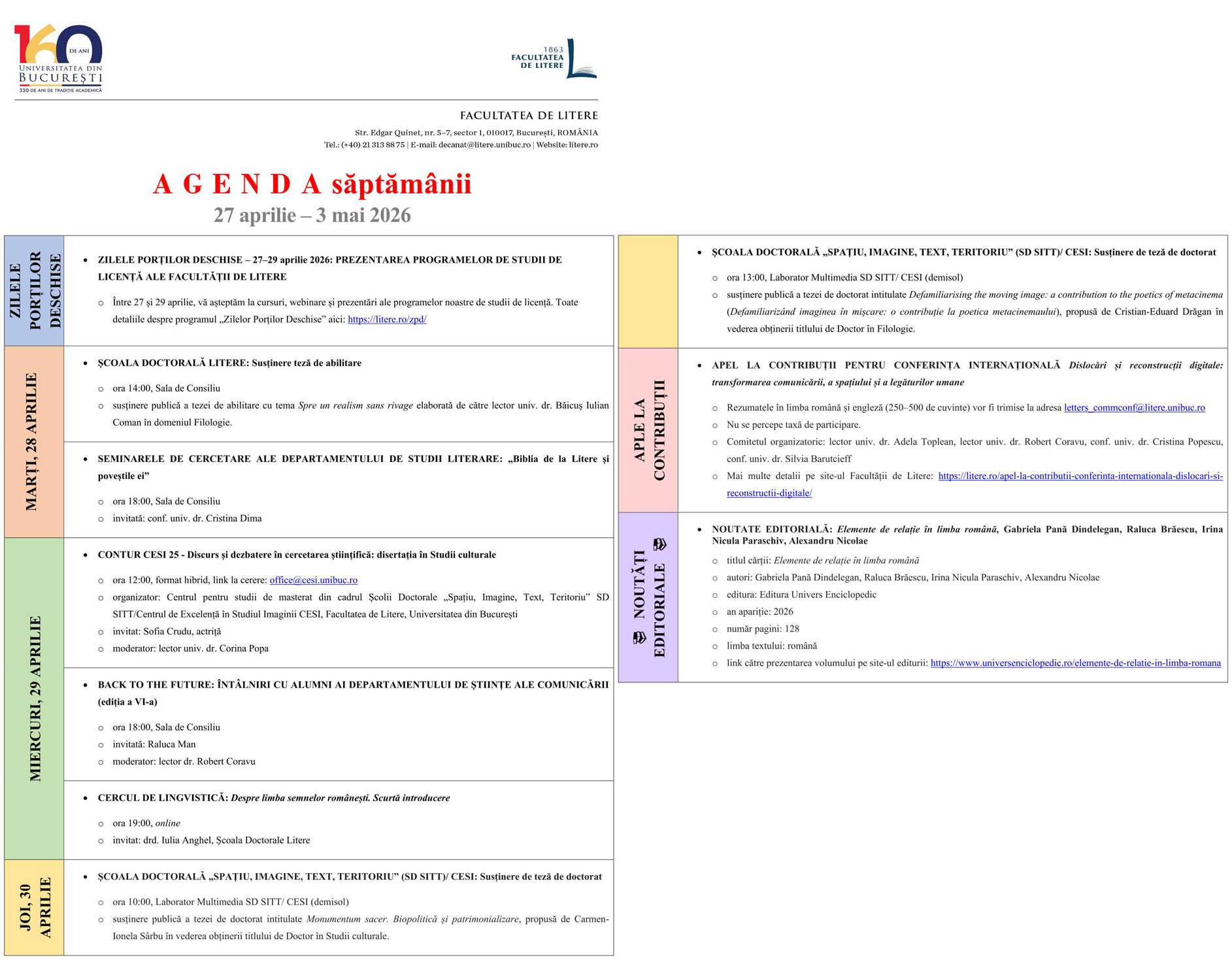 📔 Agenda săptămânii | 📅 27 Aprilie – 3 mai 2026 April 27, 2026April 27, 2026 Cristi 🔗 Click aici pentru mai multe detalii.