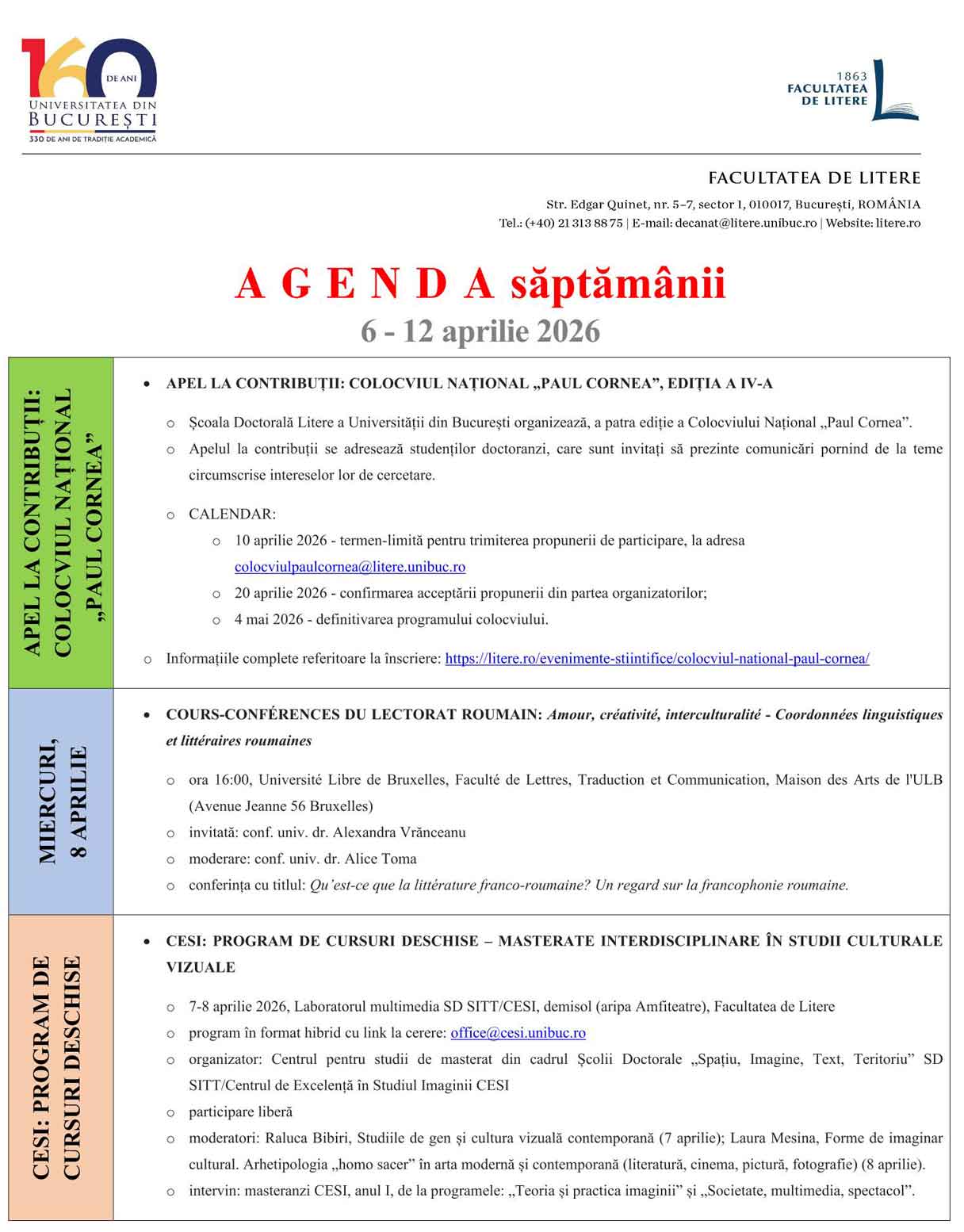 📔 Agenda săptămânii | 📅 6 – 12 aprilie 2026 April 6, 2026April 6, 2026 Cristi 🔗 Click aici pentru mai multe detalii.