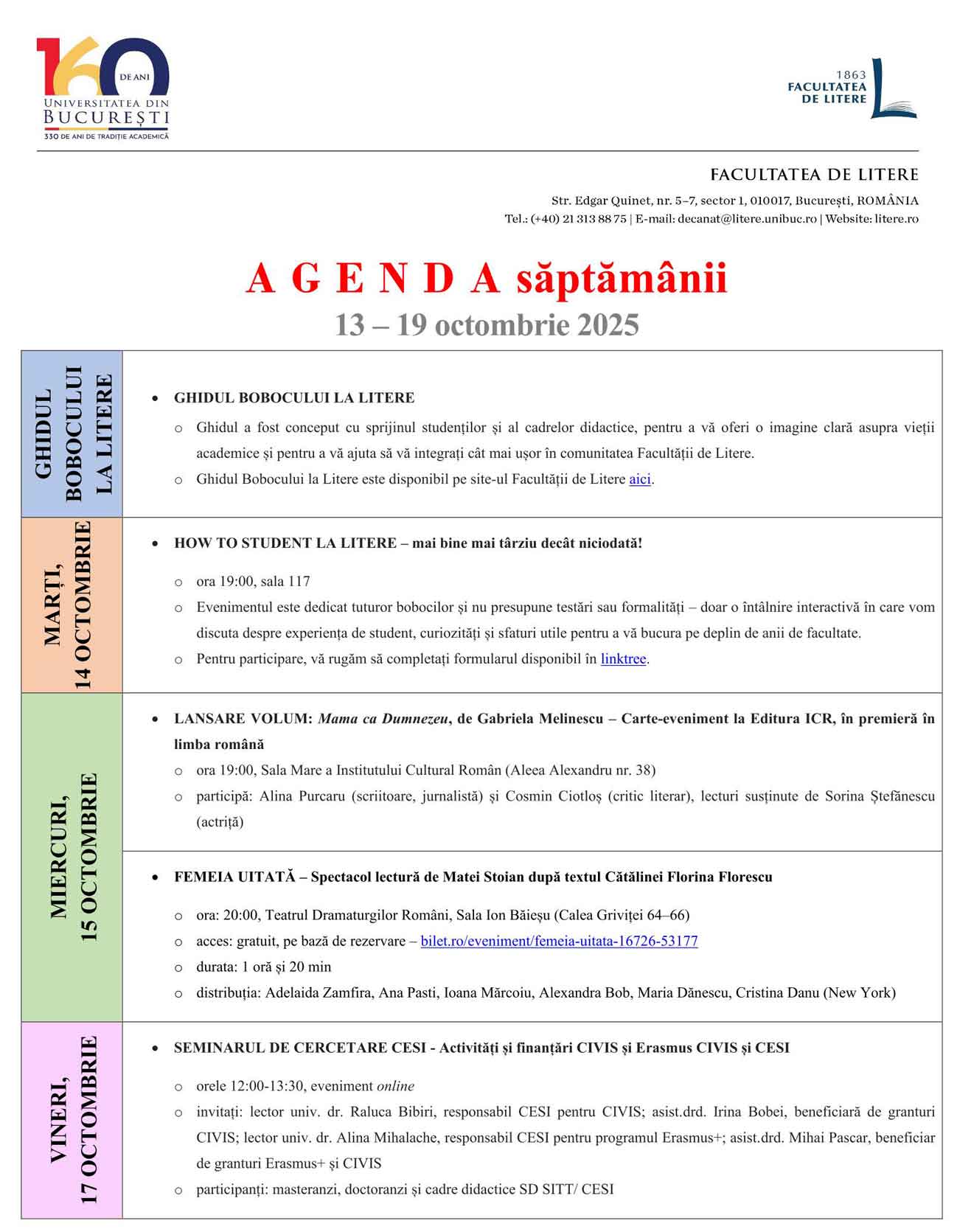 Vineri, 10 octombrie 2025, ora 16:00, Sala 120 (Tudor Vianu)