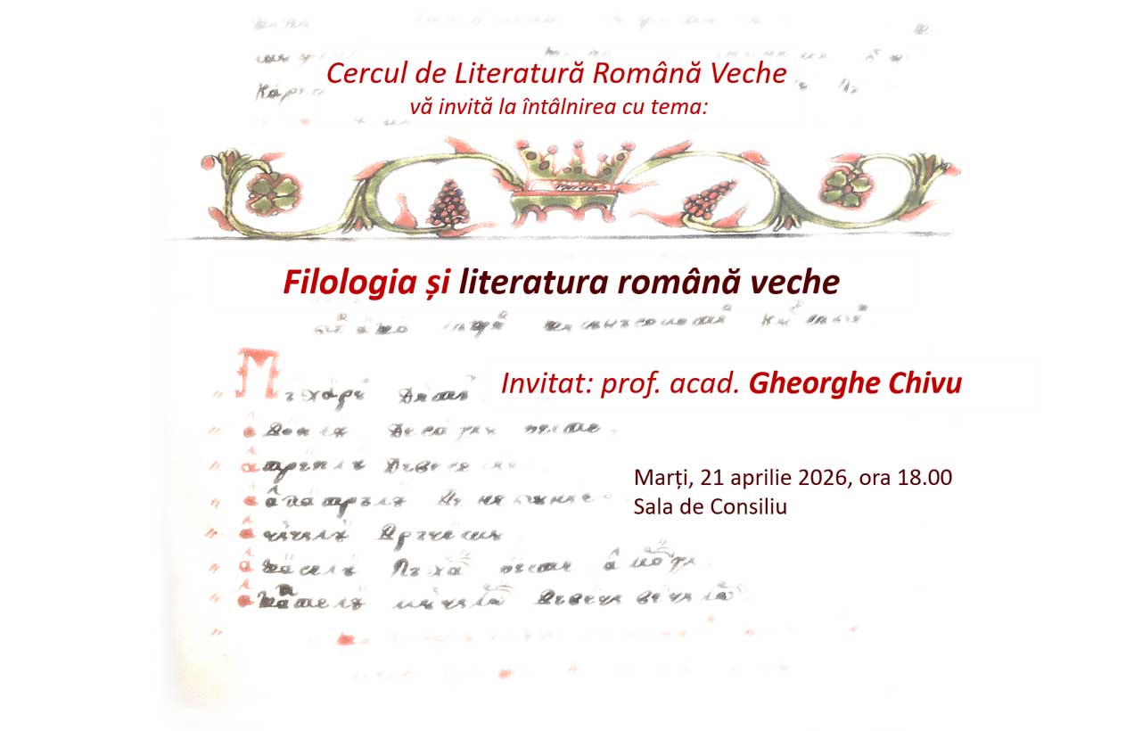 Marți, 9 aprilie 2019, începând cu ora 18.00, în sala 205 , va avea loc o nouă întâlnire a Cercului de literatură română veche, invitatul acestei întâlniri fiind domnul profesor Gheorghe Chivu